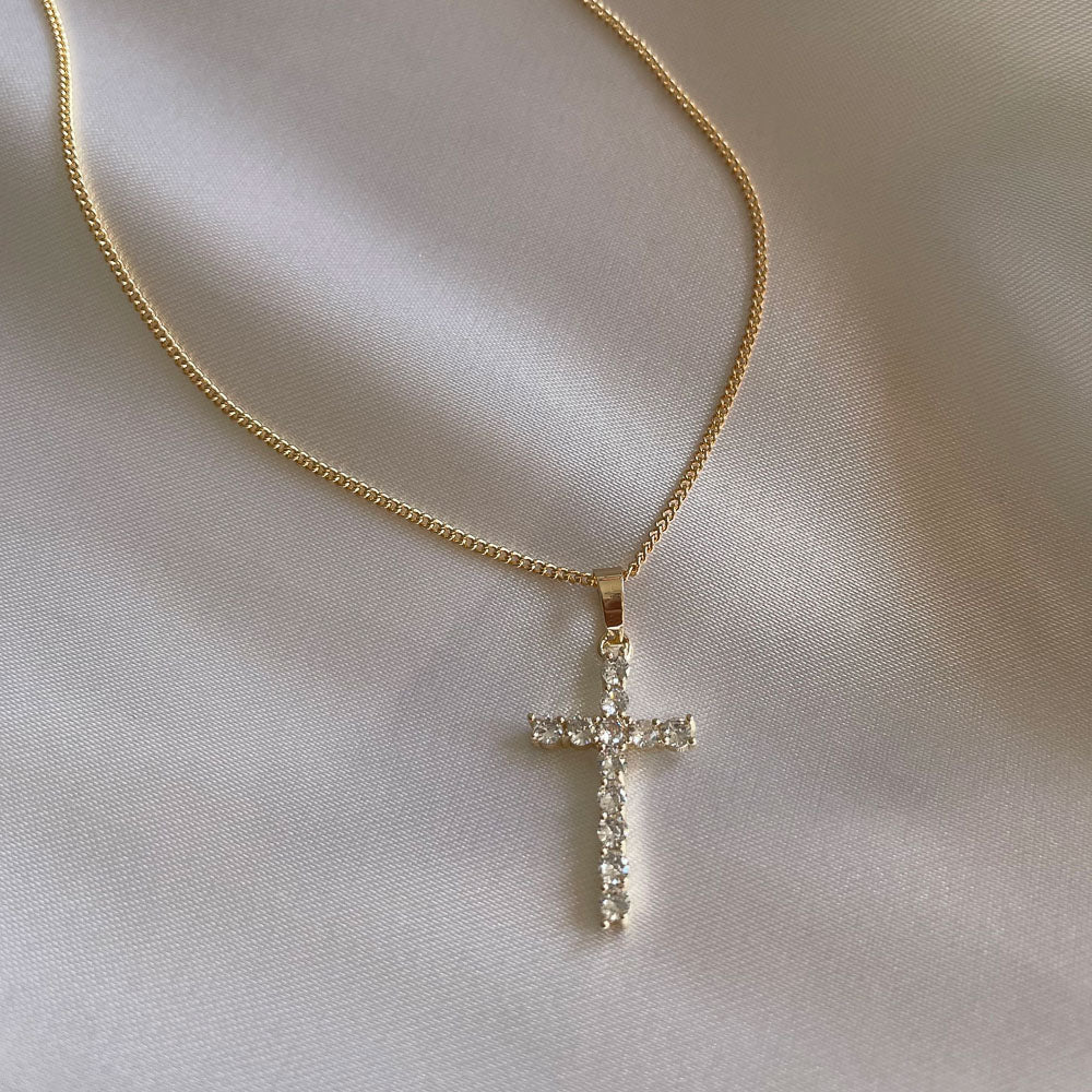 - Cubic Zirconia,Ā yellow gold layered classic cross pendant